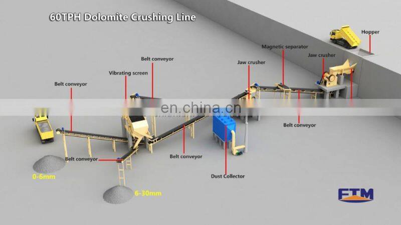The equipment required for the project information of the crushing production line shown in the picture is mainly composed of jaw crusher, vibrating screen, belt conveyor, and so on