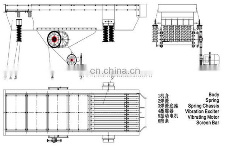 Driven by a motor, the two eccentric axes are rotated to produce a huge resultant linear excitation force, making the body vibrate compulsively on the support, and the materials slide and sling on the material groove to achieve the purpose of feeding by moving the materials forward.