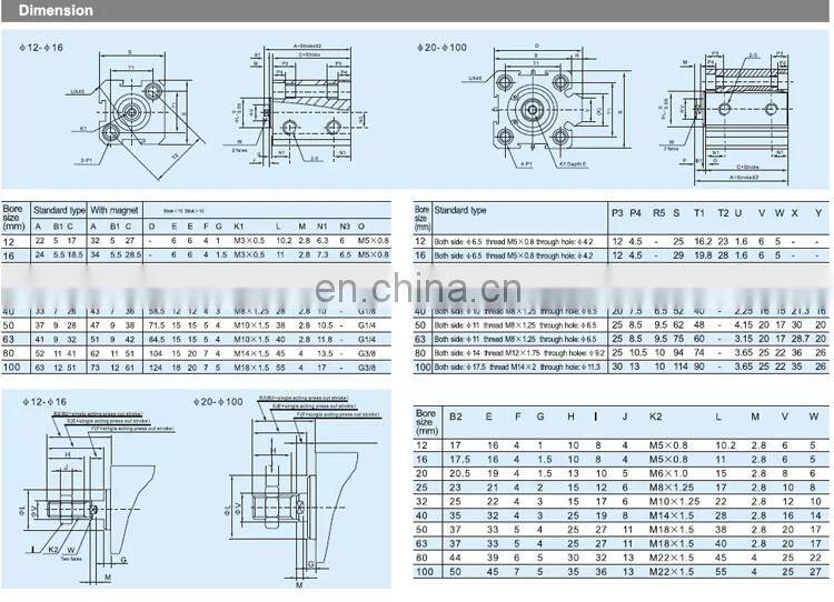 Model | SDA12 | SDA16 | SDA20 | SDA25 | SDA32 | SDA40 | SDA50 | SDA63 | |||||||