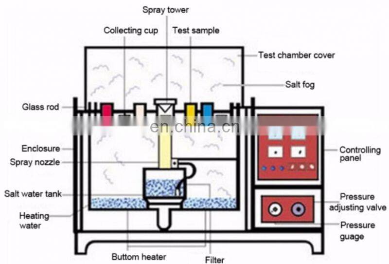 Liyi salt spray test machine is an accelerated corrosion test that produces a corrosive attack to the coated samples in order to predict its suitability in use as a protective finish. The appearance of corrosion products (oxides) is evaluated after a period of time. Test duration depends on the corrosion resistance of the coating; the more corrosion resistant the coating is, the longer the period in testing without showing signs of corrosion. Different coatings have different behaviour in salt spray test and consequently, test duration will differ from one type of coating to another.