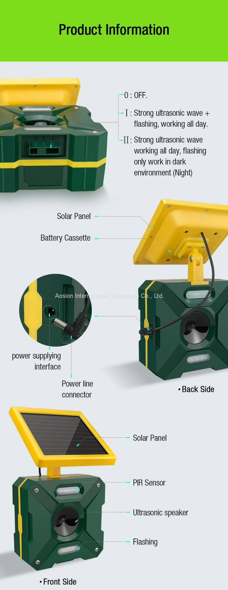 Aosion Garden Ultrasonic Multifunctional Battery Powered Animal RepellerUS$ 17 - 20MOQ: 1000 Pieces
