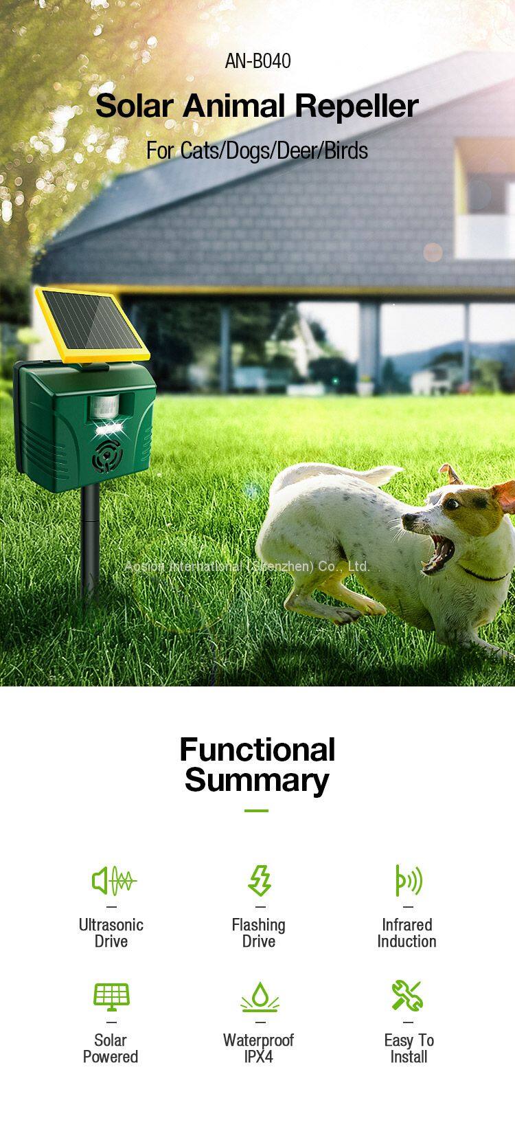 Aosion Garden Ultrasonic Multifunctional Battery Powered Animal RepellerUS$ 17 - 20MOQ: 1000 Pieces