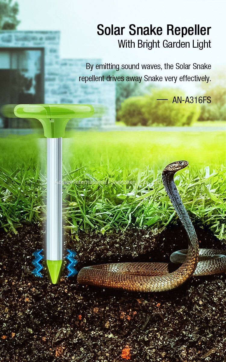 The solar powered snake repeller is applicable to outdoor gardens, nurseries, lawn and other surface and underground flooding rat.