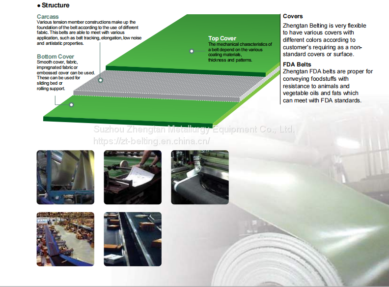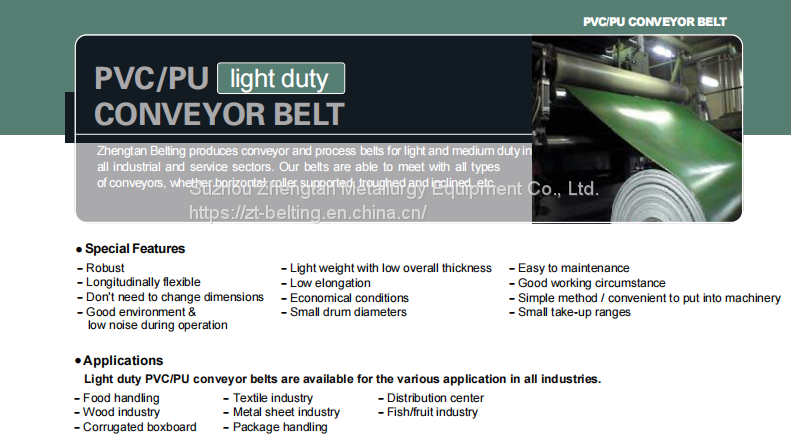 Zhengtan Belting produces conveyor and process belts for light and medium duty in all industrial and service sectors. Our belts are able to meet with all types of Conveyors, whether horizontal, roller supported, troughed and inclined, etc.