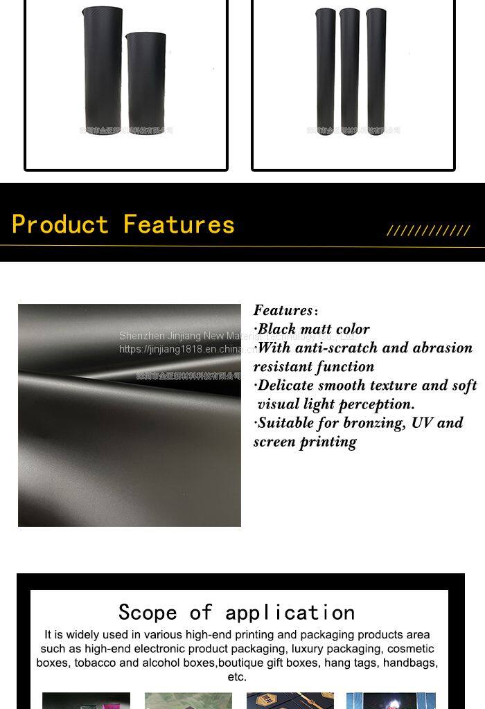 Black Anti-scratch Matt Lamination Film is one kind of the black BOPP matt lamination film with scratch-resistant and abrasion-resistant function. The surface has a soft visual light perception and a smooth, delicate touch texture.