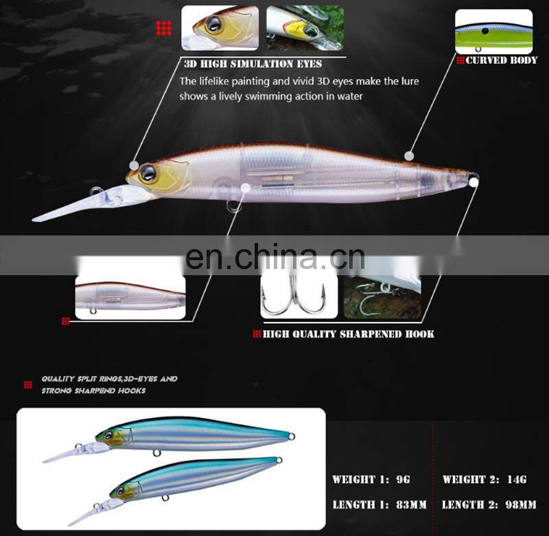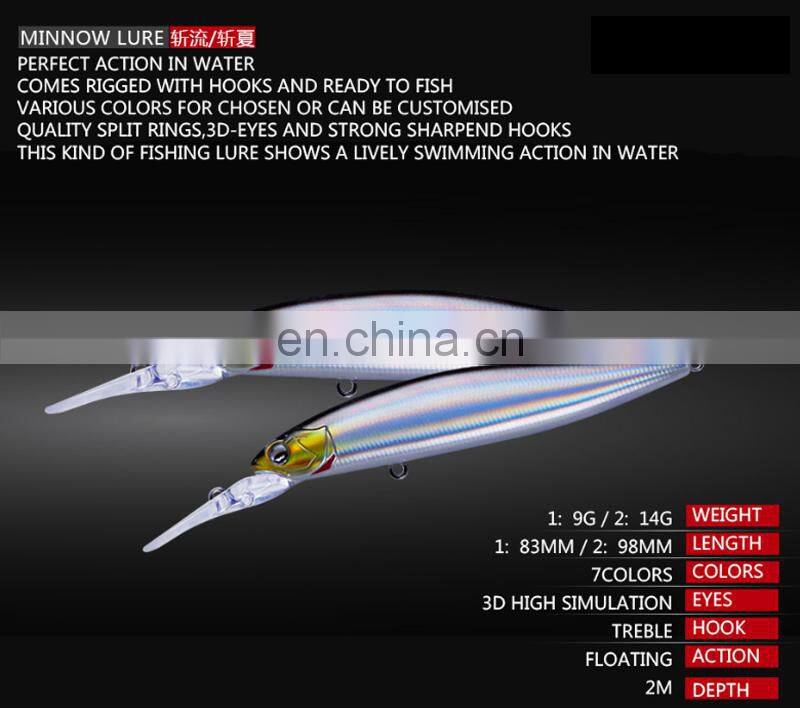 Home > Products > Hard Lure > Amazon 9g 14g Wholesale ABS Plastic Long Casting Bass Fishing Best Quality Japan Minnow Lure