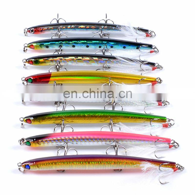 Home > Products > Hard Lure > Amazon New 11.7cm 11.8g Hard Plastic Fishing Lure Feather Treble Hook Sinking Fishing Pencil Stick