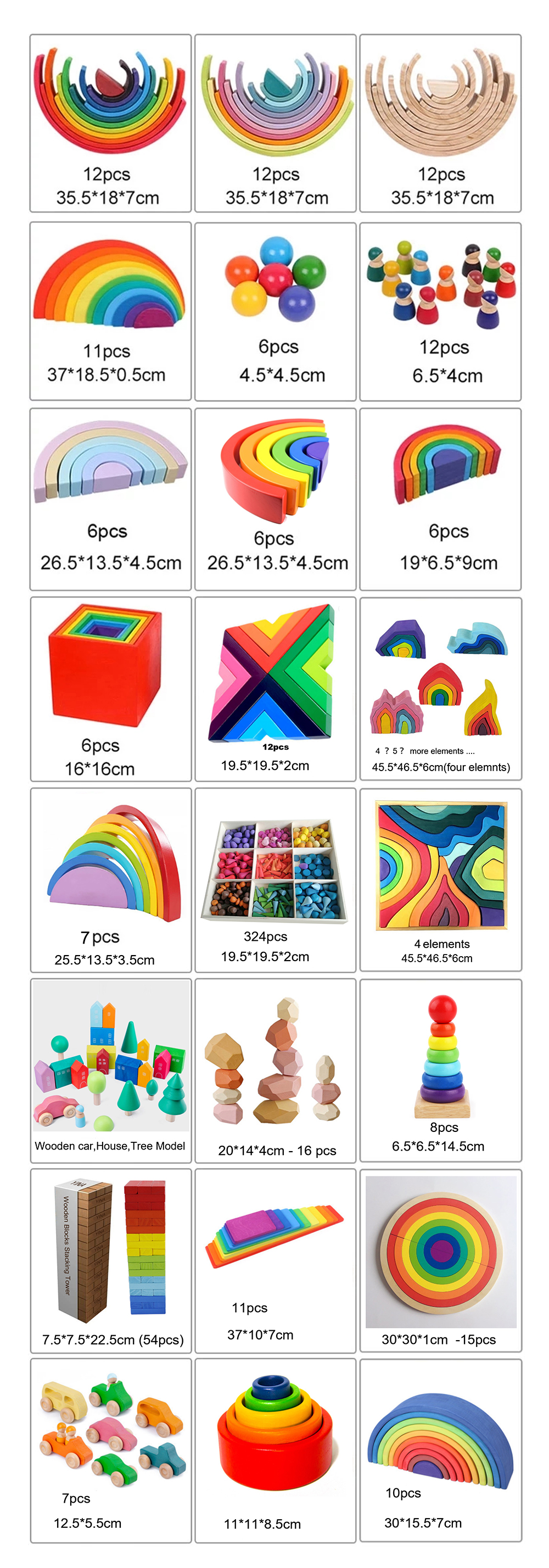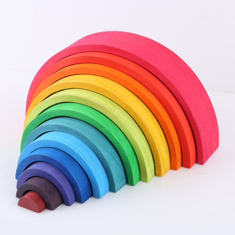 Custom Baby Educational Wooden Rainbow Step Unit Blocks | Natural Toys & Crafts