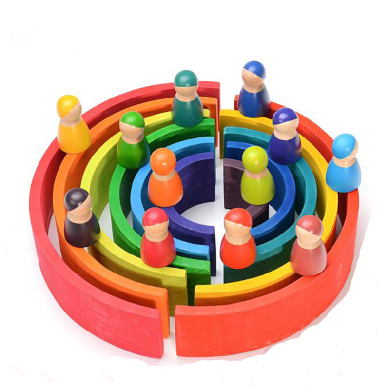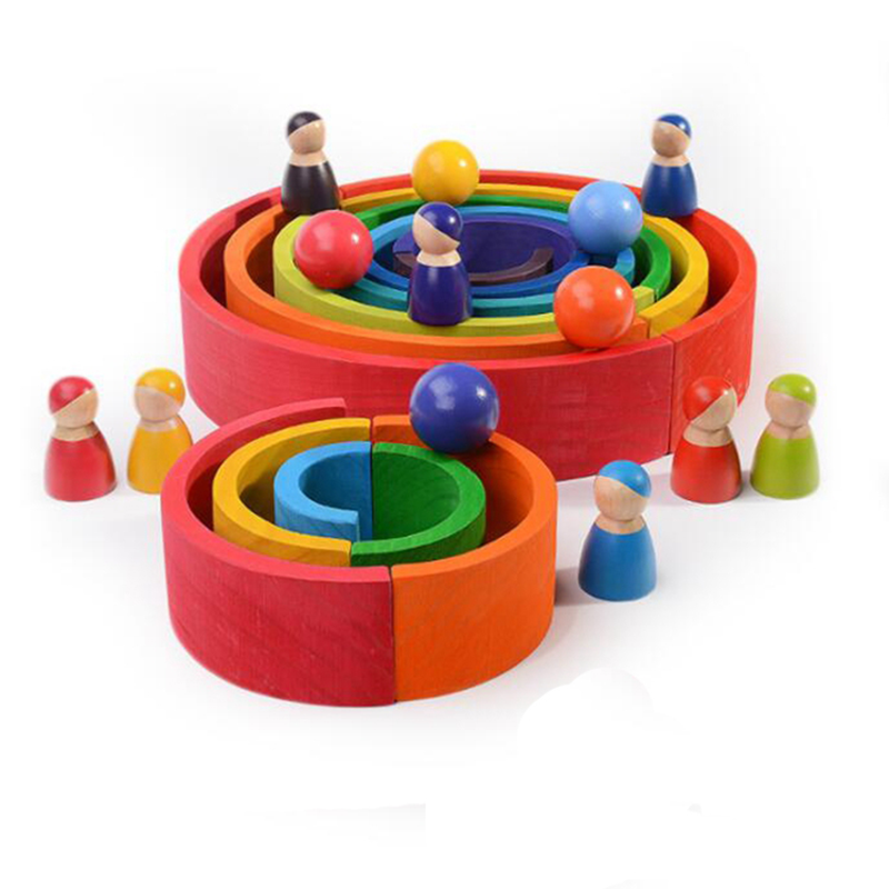 Custom Educational Wooden Rainbow Puzzle Montessori Toy, Wooden Block Puzzle Games For Kids