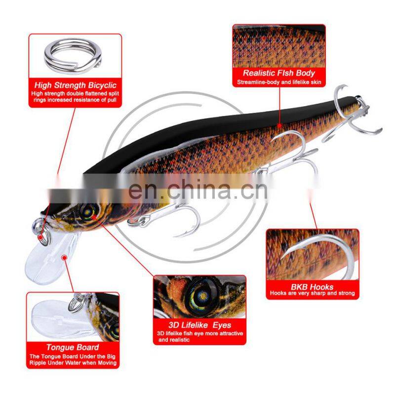 New Design Hard Fishing Lure 125mm/15g 0.3-1m Depth Lure Minnow Floating Wholesale