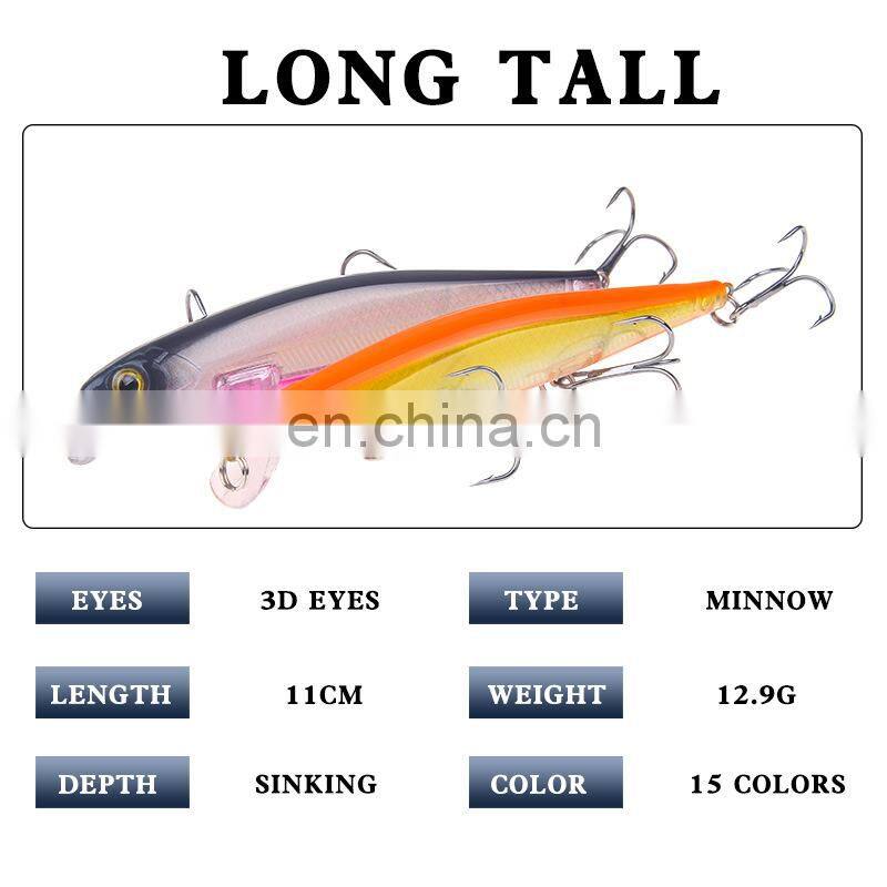 Hot Selling Fishing Gear 11cm 12.9g Lifelike Hard Bait Fishing Lure Minnow for Freshwater Saltwater Fishing