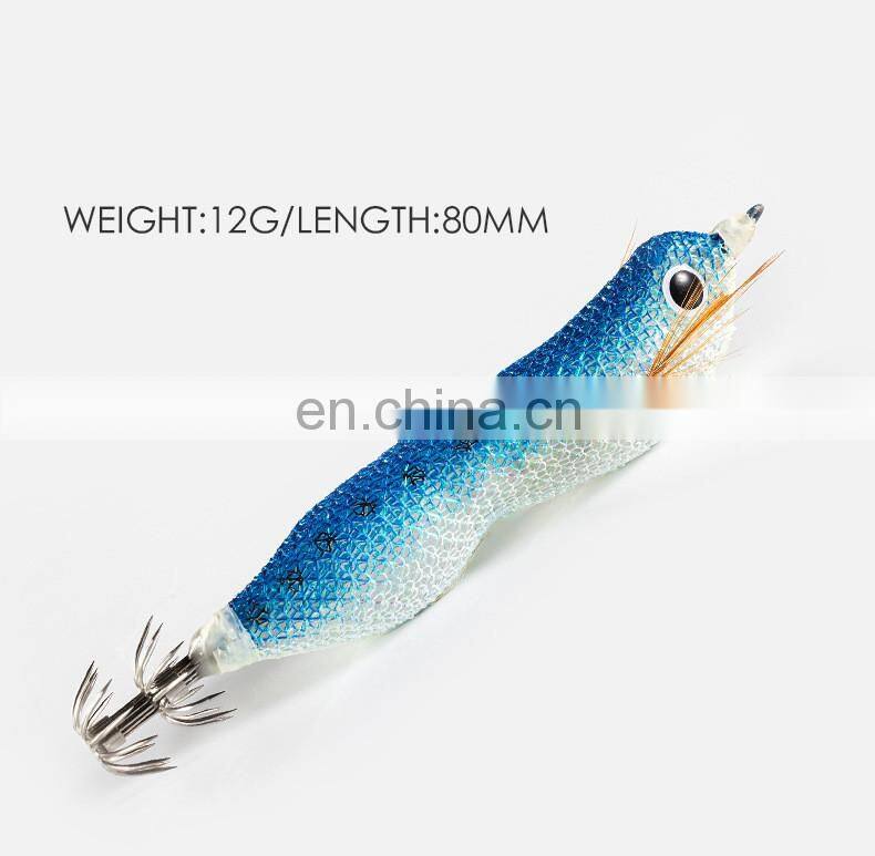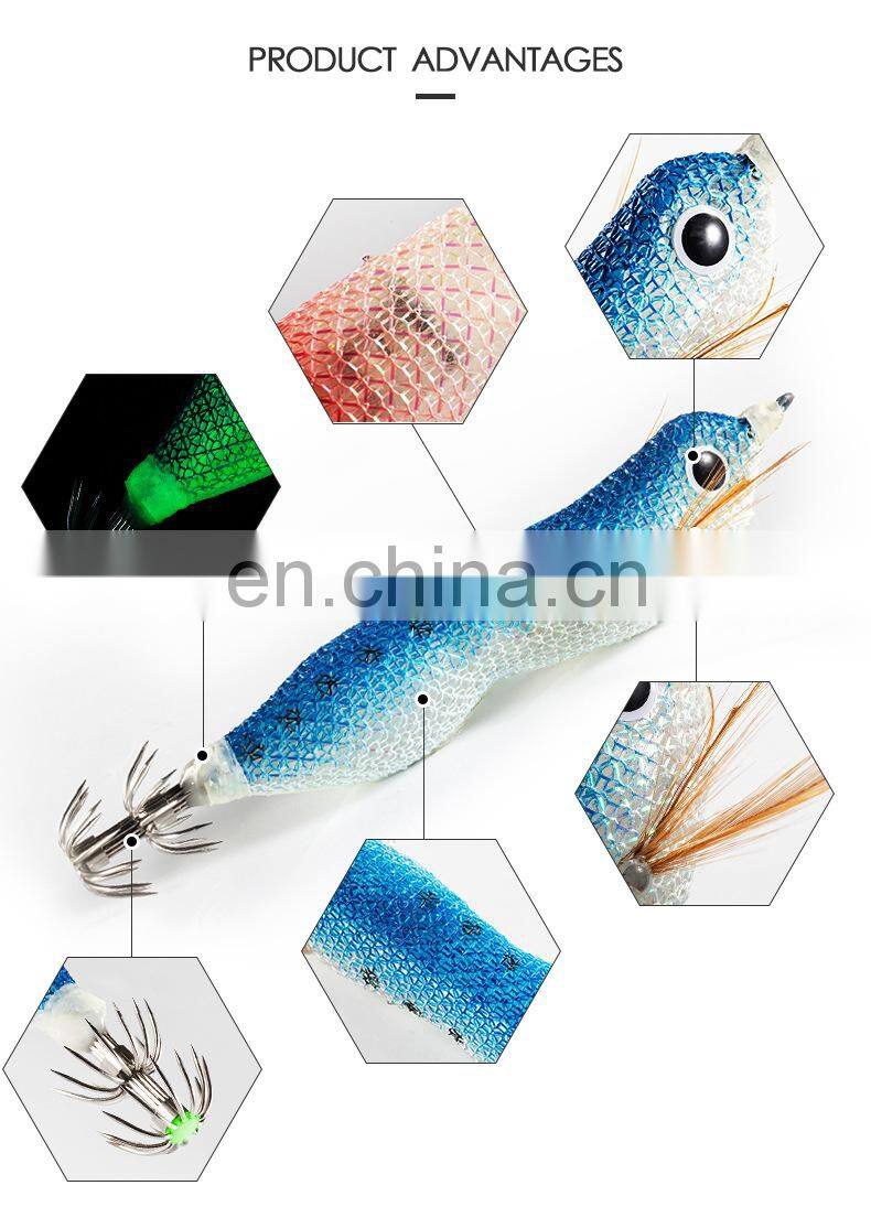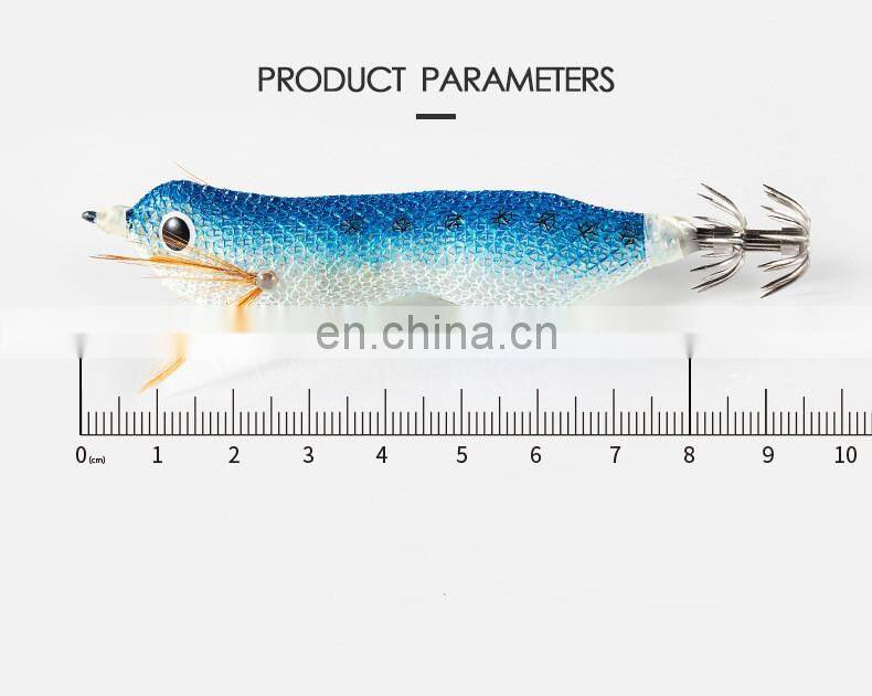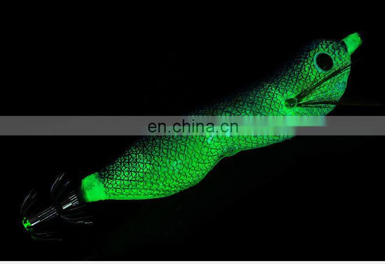 12G/8CM Flash Fishing Hard Lure Luminous Squid Jig Lures Wood Shrimp With Button Batter