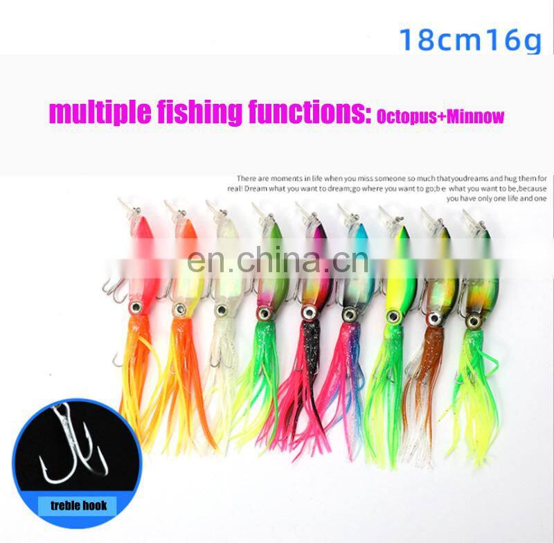 Multiple Functions 7 Inches 18cm/16g 9 Colors Octopus Lure Squid Lure for Trolling,bait,casting,spinning,surf Fishing