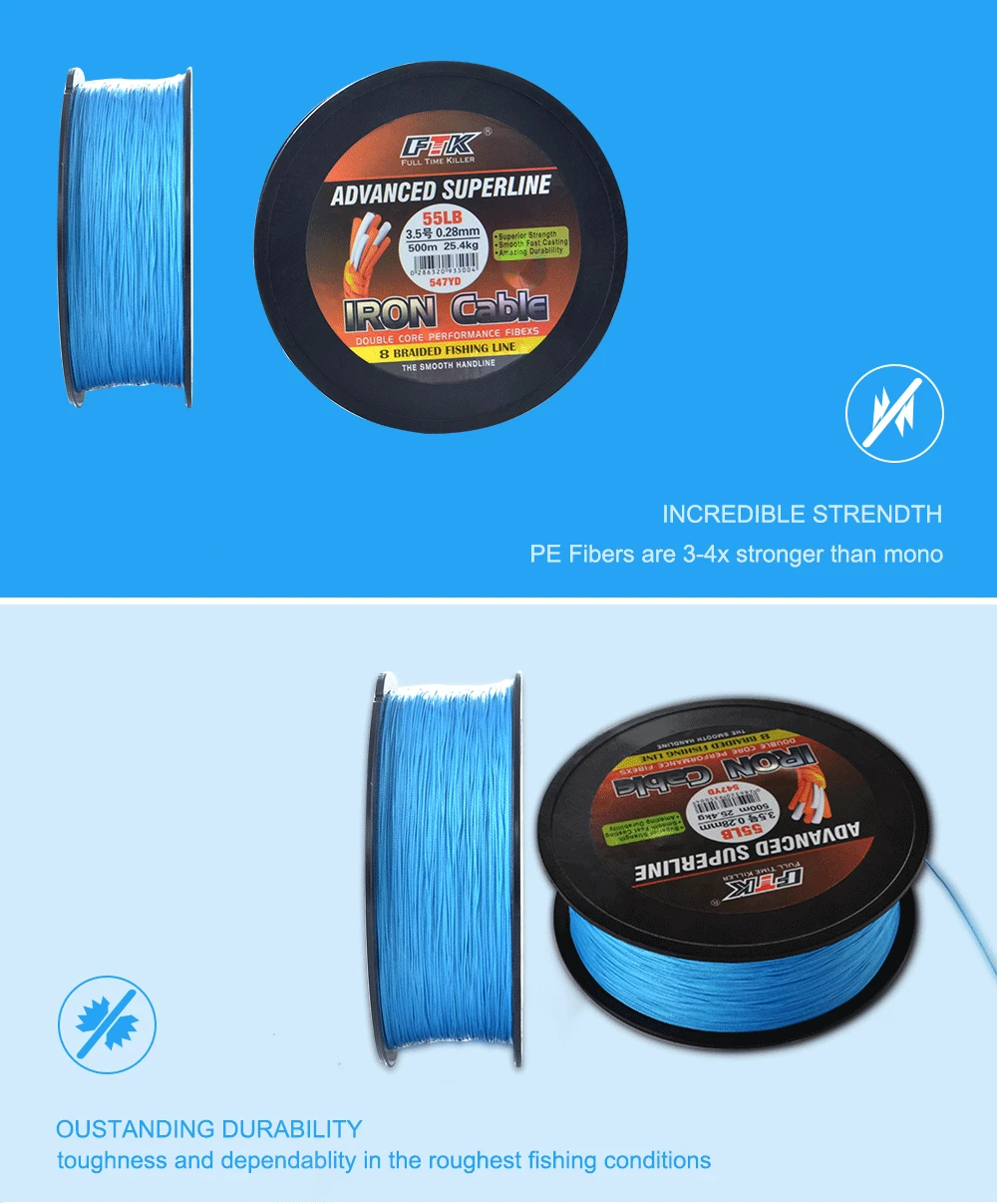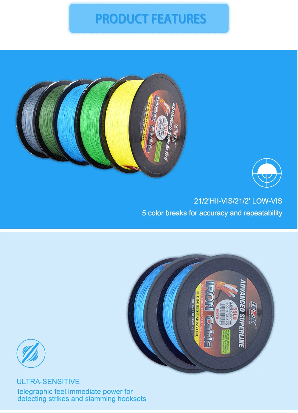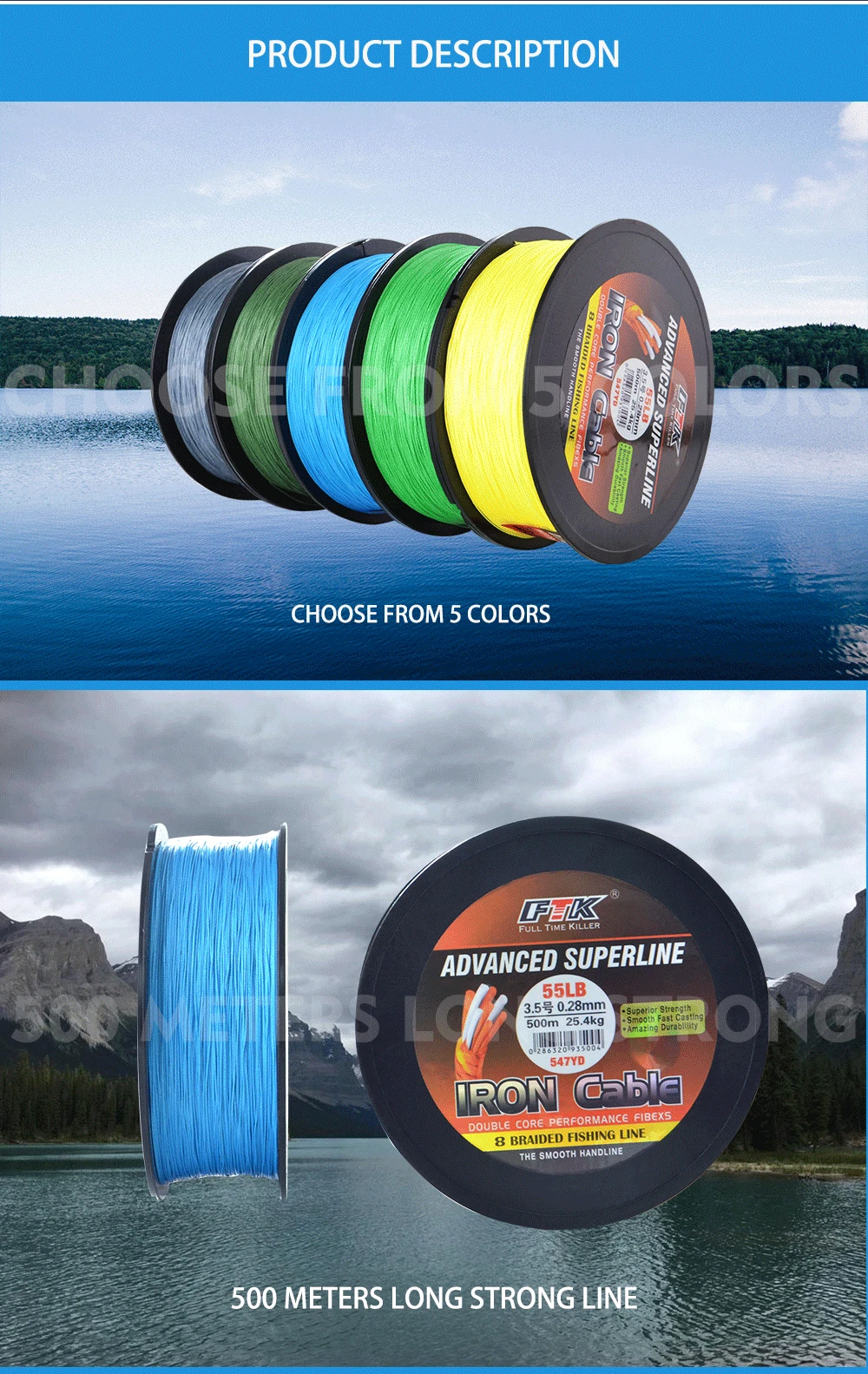 Top Sales 8 Strands 500m Long Strong PE Fishing Line 5 Colors Polyethylene Fishing Line