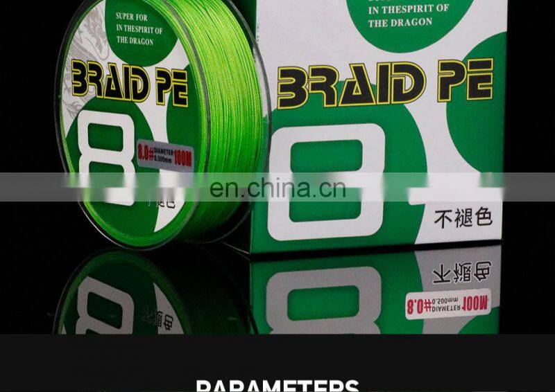 Best Quality 100m 8 Strands Fishing Line With Green Color 7.3kg-36.4kg Tension Braided Fishing Line