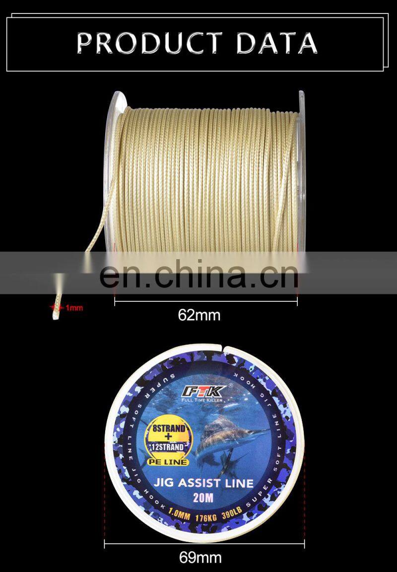 New 12 Strands 20m PE Jig Assist Fishing Line 2 Colors Carp Fishing Hook Links Fishing Line