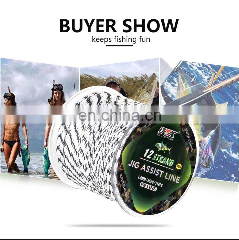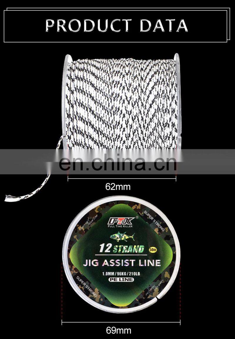 New 12 Strands 50m PE Jig Assist Fishing Line Black&White Color Carp Fishing Hook Links High Intensity Fishing Line