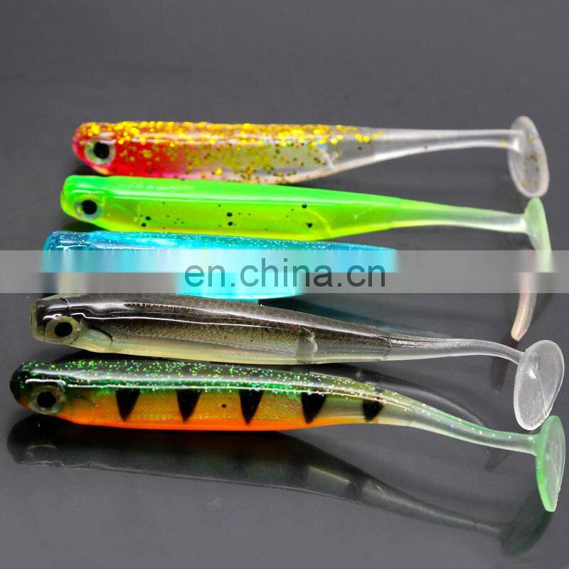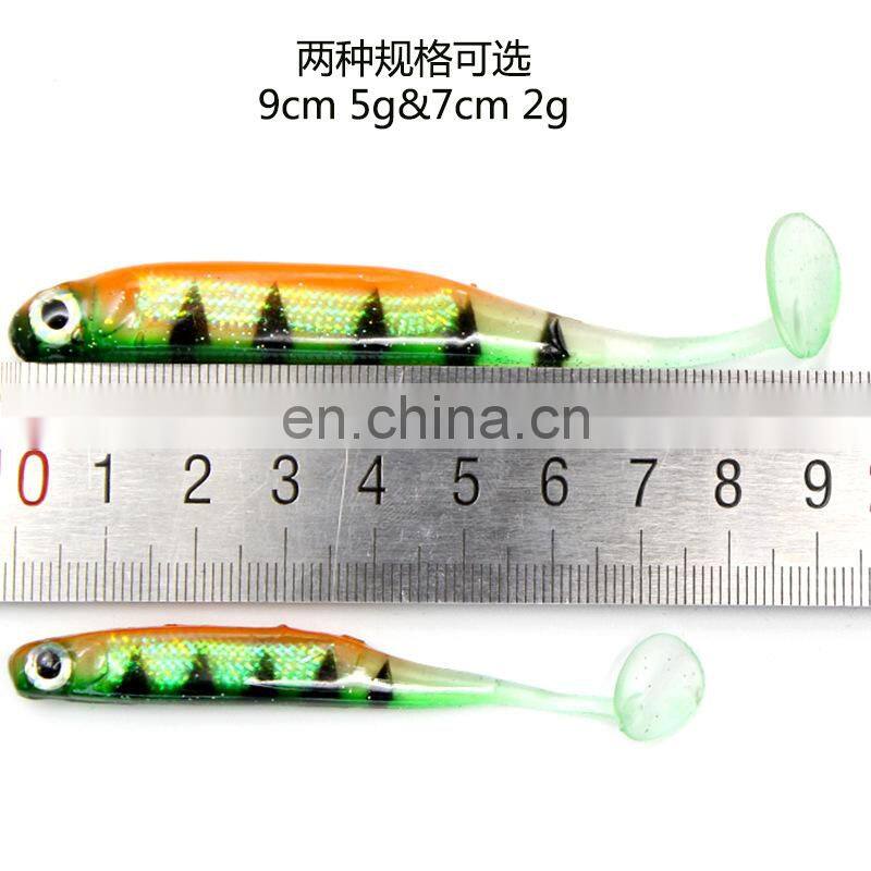 9cm 5g 5pcs a Bag 3D T-tail Ocean Beach Colorful Seabass Lifelike the Colours of the Rainbow Silicone Fishing Soft Lure