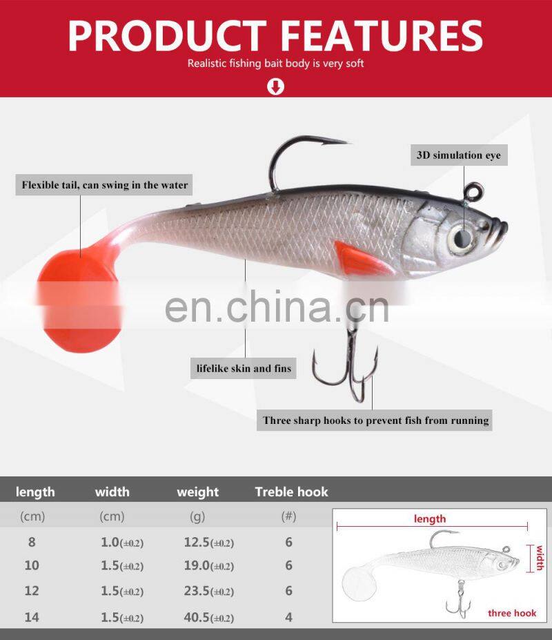 8cm 10cm 12cm 14cm fishing lure plastic soft lure with lead jig hook and treble hook