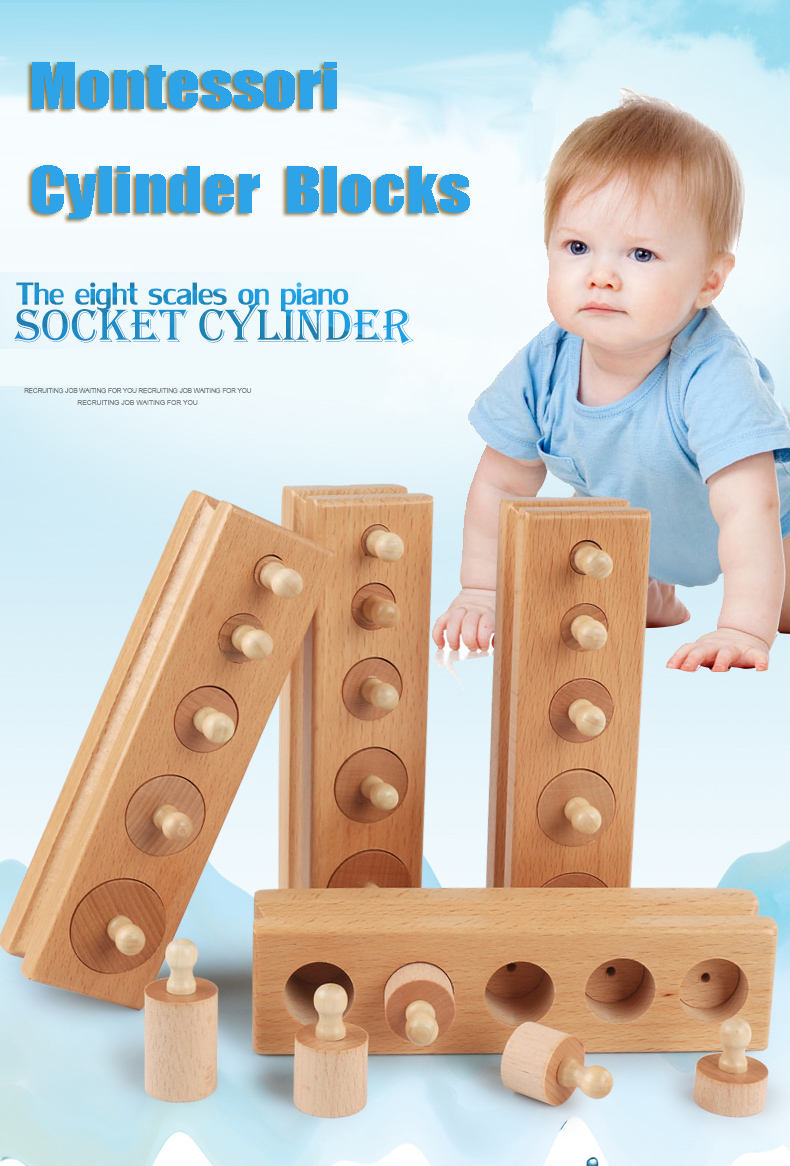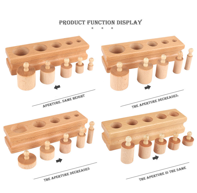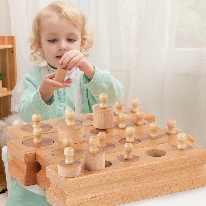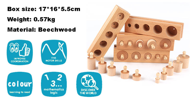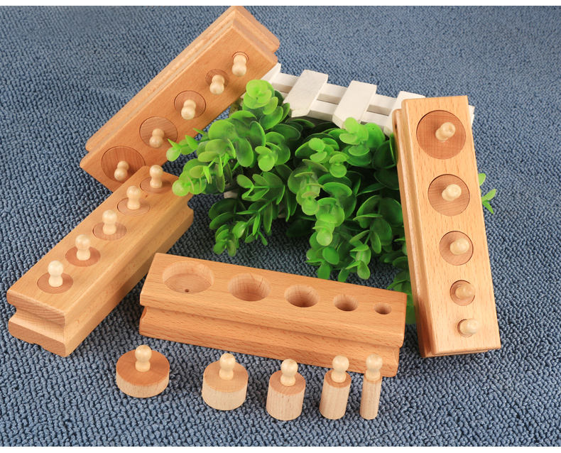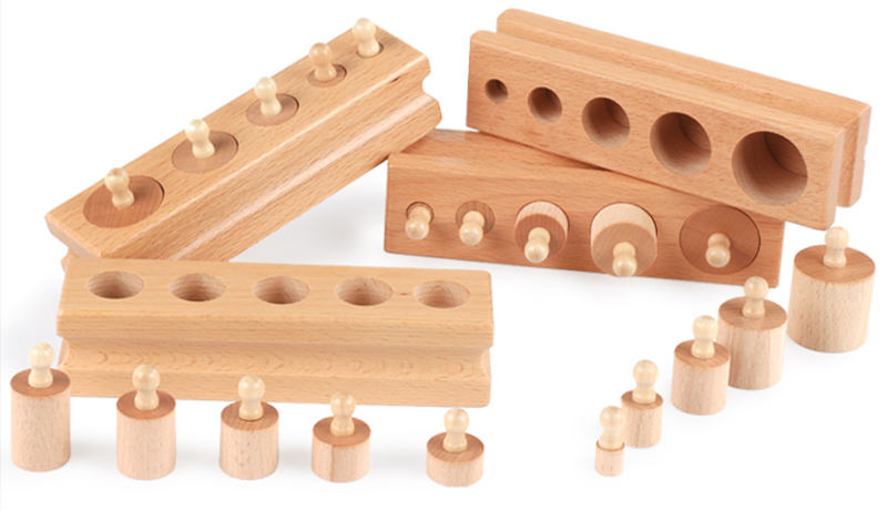 Knobbed Cylinder Montessori, Montessori Cylinders With Knobs Socket Montessori Materials Educational Toys (Set of Four)