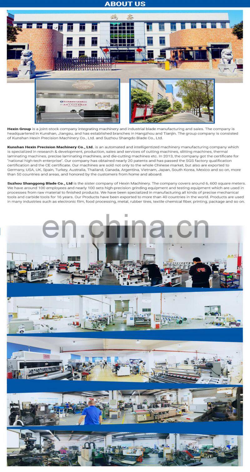 Kunshan Hexin Precise Machinery Co.Ltd is an automated and intelligentized machinery manufacturing company which is specialized in research and development, production, sales and and services of cutting machines, automatic slitting machines, thermal laminating machines, precise laminating machines, die cutting machines and screen printing machines.