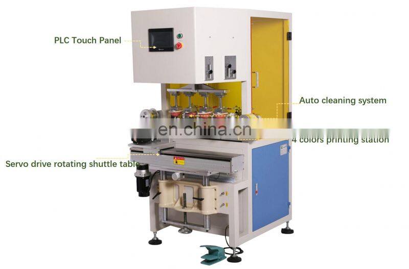 Servo Motor Rotation Four Color Ink Cup Electric Tampografia Pad Printer 4 Color With Shuttle