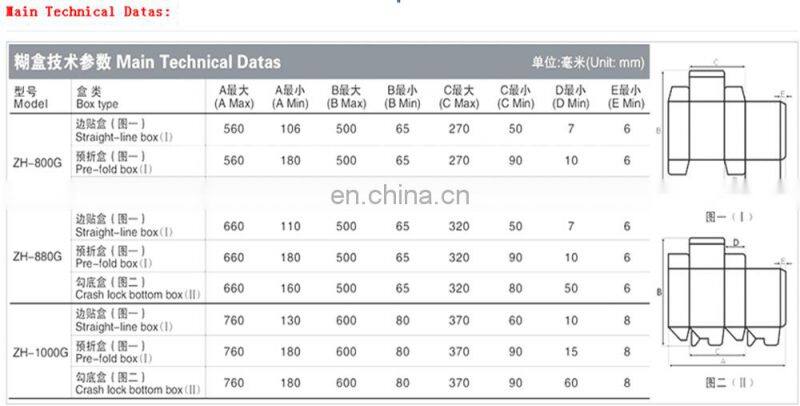 ZH 800G Automatic Carton Box Multi-functional Crash Lock Bottom Folder Gluer Machine