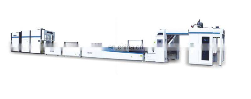 The production line consists of a flute laminating machine and a fully automatic pile turning machine. The high speed flute laminating machine is suitable for the stick of paper and corrugated board. The motion control system is perfectly integrated with the servo correction system. Using the relative position of multiple sets of photoelectric induction paper, the servo motor on both sides of the control paper is independently compensated, and the position of the bottom paper is tracked by the paper. Make the paper and the bottom paper accurately positioned. The machine is easy to operate and simply input the size of the paper, the machine will be adjusted by itself.