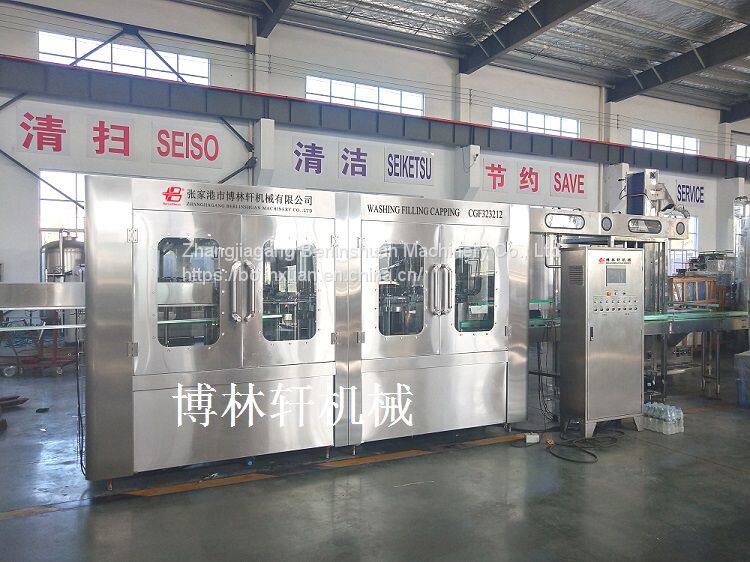 CGF Wash-filling-capping (Rinsing-bottling-sealing) 3-in-1unit: Beverage Machinery is used to produce polyester bottled mineral water, purified water, alcoholic beverage machinery and other non-gas beverage machinery. Beverage Machinery can finish all the process such as washing bottle, filling and sealing, it can reduce the materials and Outsiders touch time, improve the sanitary conditions, production capacity and economic efficiency.
