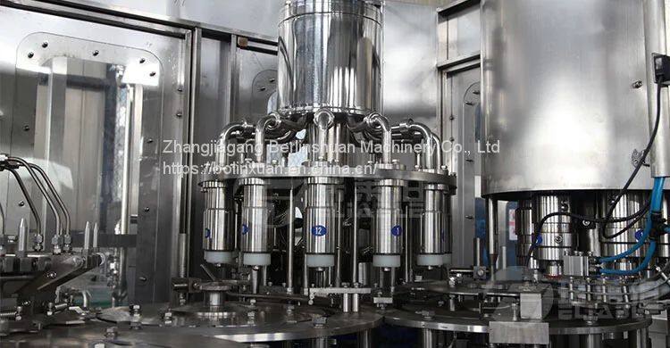 CGFR series automatic beverage hot filling machine, this machine set washing, filling, capping three machine introduced Italian technology, precision manufacturing, can line of aseptic filling, increase the constant temperature system, replace part of the accessories, can adapt to heat PET bottles, juice, tea, drinks and other hot filling process requirements. The unit is simple in operation, small in area, compact in structure, suitable for PET bottles of various non-gas drinks (mineral water, pure water, distilled water, fruit juice, tea, drinks, etc.) at room temperature or hot filling, also use vinegar and other liquid cleaning, filling, sealing. The line is simple in design, novel in style, simple in function, strong in adaptability, convenient in operation, beautiful in appearance and high in automation. It is the filling equipment of juice tea beverage at home and abroad.