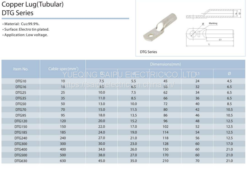 series of copper-aluminum bimetal cable lugs are suitable for transfer connection of the circular aluminum wires, hemicycle-sector aluminum wires, power supply cables in the distribution equipment and copper terminals of electrical equipment. The material of aluminum and copper is that of L3 and T2 respectively. It has the features of strong weld intensity, good nature in the electrification, resistant galvanized corrosion and long service life.