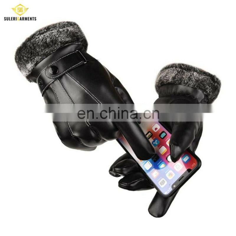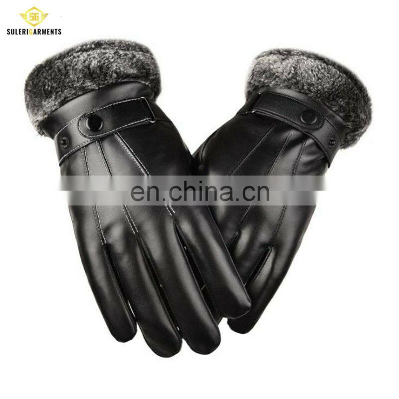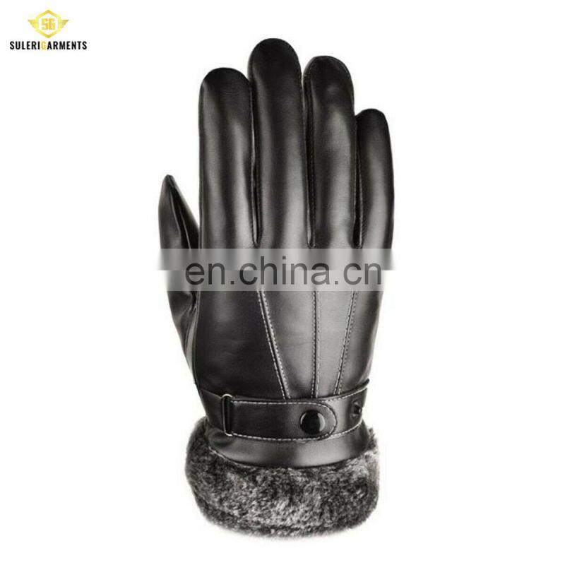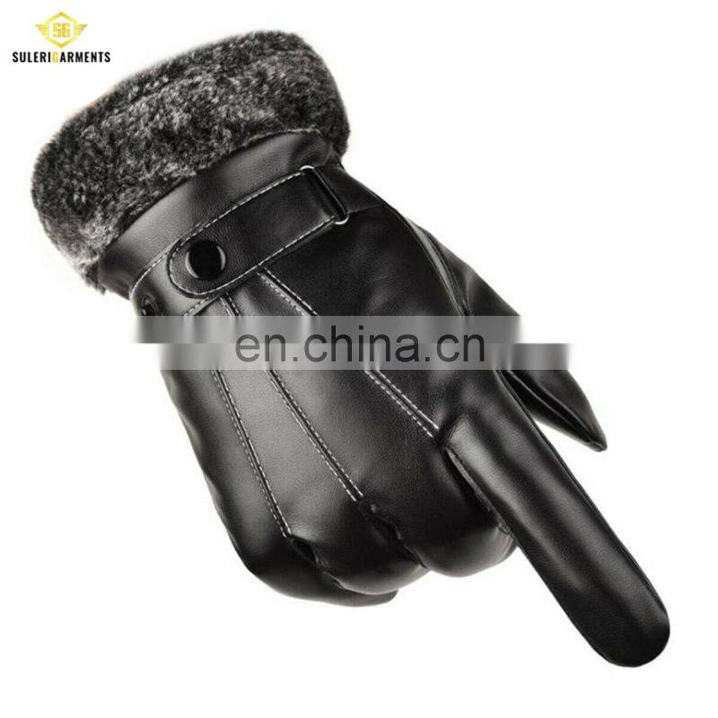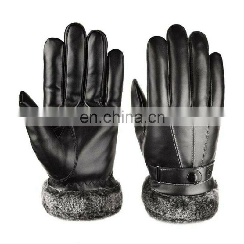 Fashion Men Leather Gloves Wrist Solid Leather Gloves Men's Sheepskin Driving Winter Warm Gloves