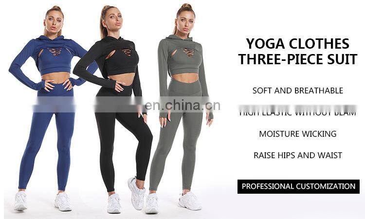 New Fashion 3 Piece Yoga Pants Set Elasticity Sport Wear Logo Yoga Activewear Set