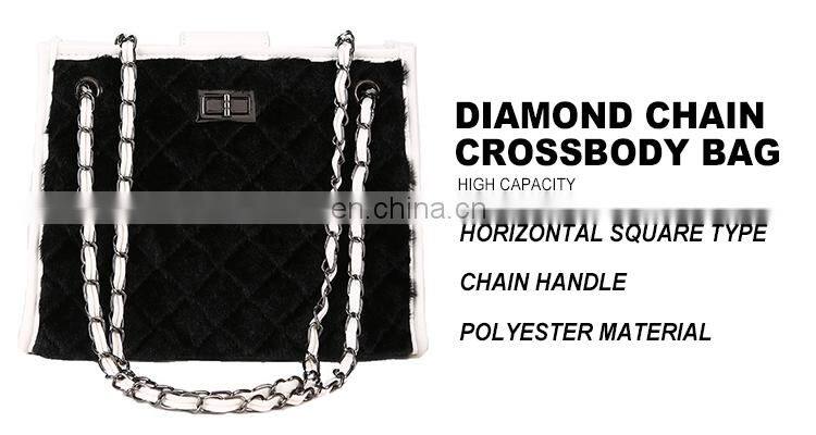 Product name | Women Plush Handbag Shopping Bags Large Capacity Tote Diamond Lattice Winter Faux Fur Chain Bag New Contrast Color Crossbody Bag | |||||||||