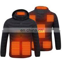 USB Rechargeable Smart Electrical 8 Plate Heating Winter Waterproof Mens Womens Long Sleeve Hoodie Warming Heated Down Jacket