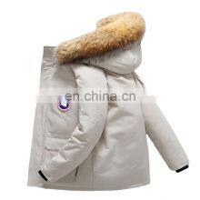 Men's Down Jacket Mid-length White Duck Down Couple Hooded Down Coat Tooling Cotton Long Down Jacket Bubble Coat