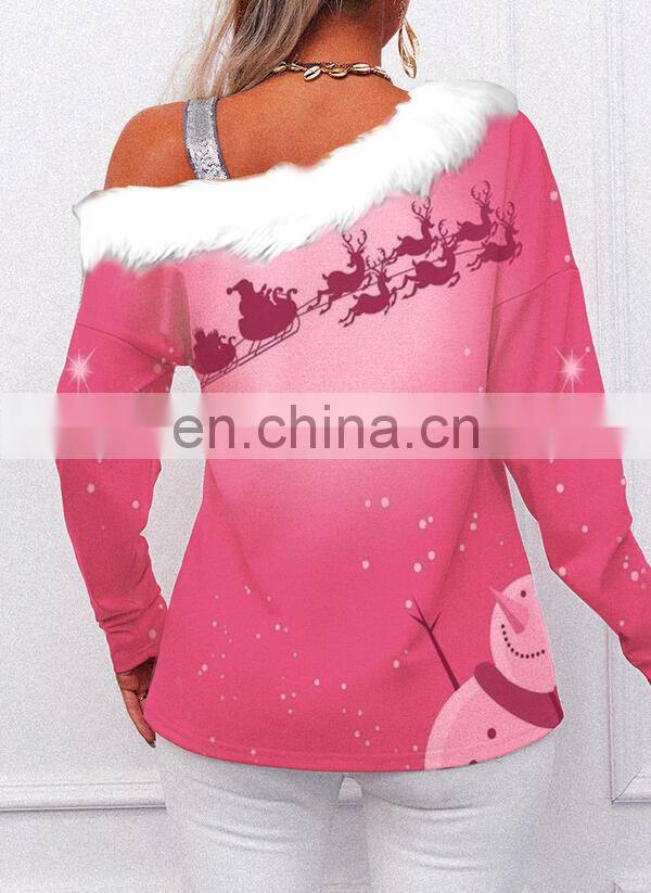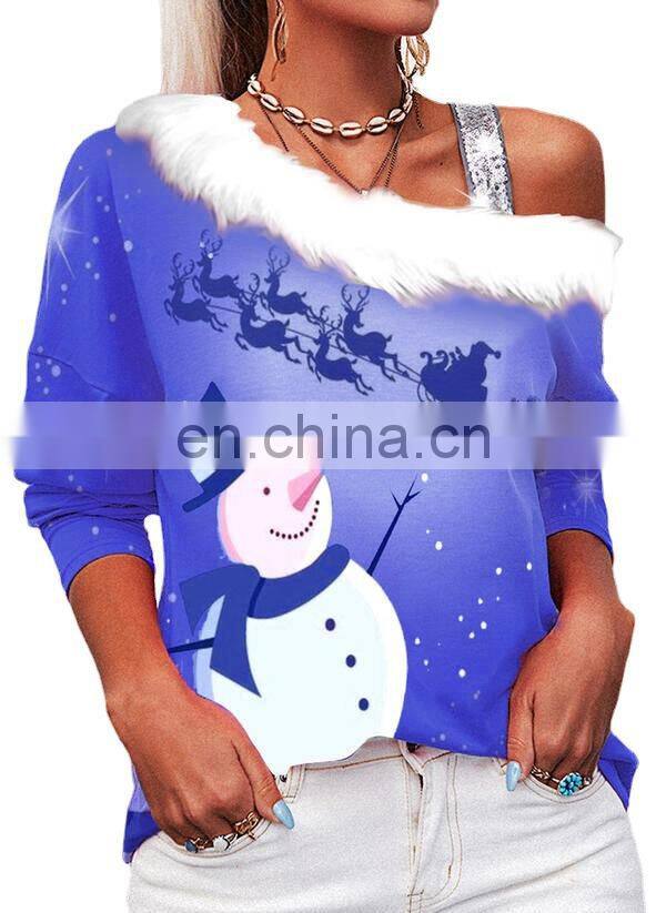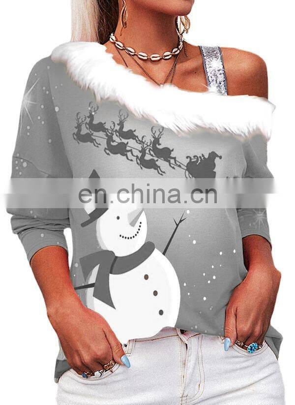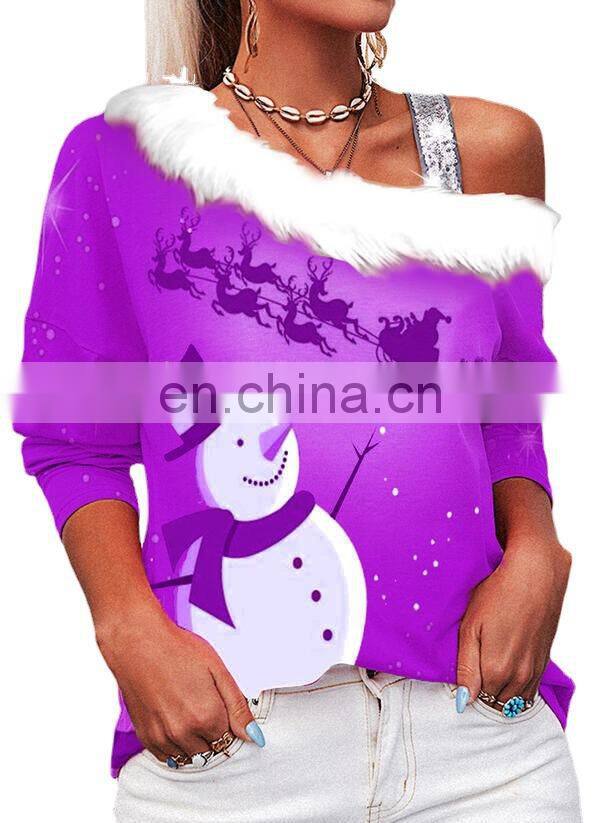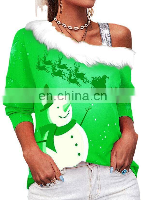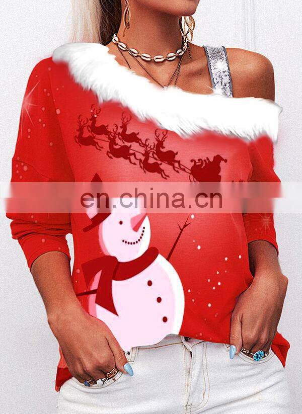 Factory Wholesale Women's One-shoulder Sexy Sweater T-shirt Loose Casual Sports Christmas Top Crop Ladies Jacket
