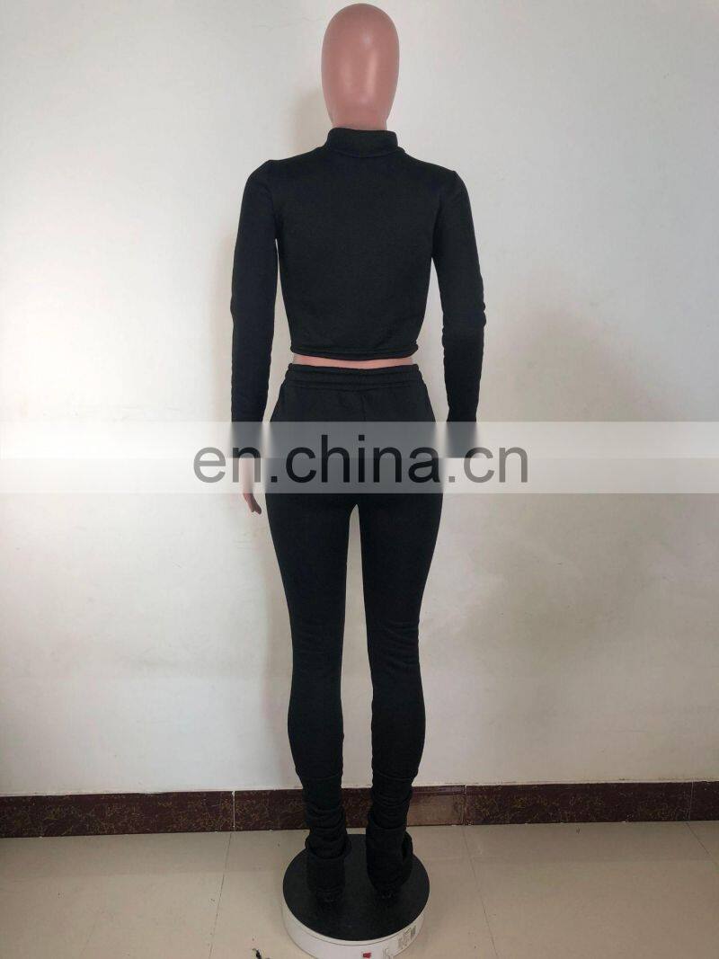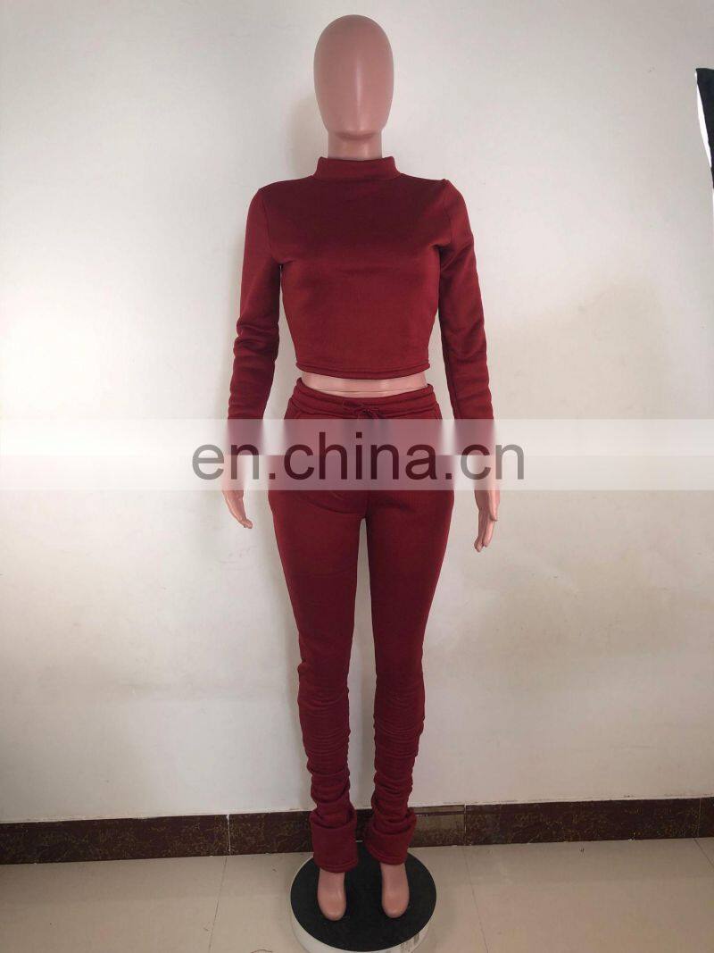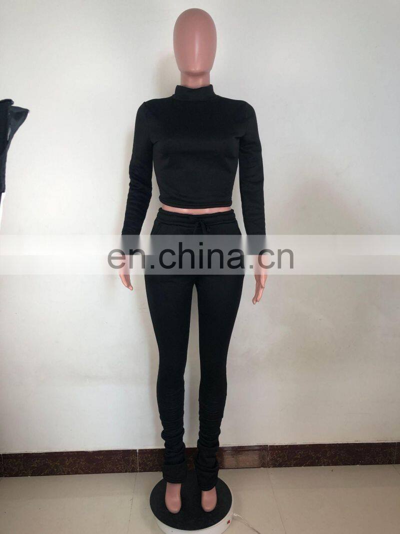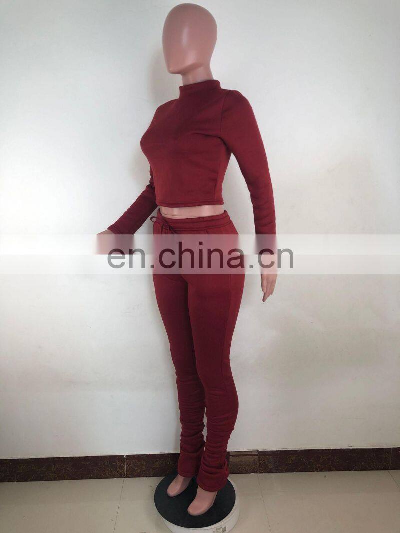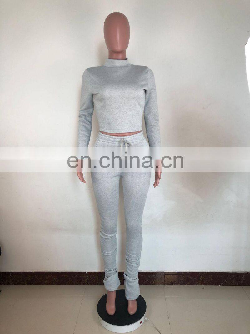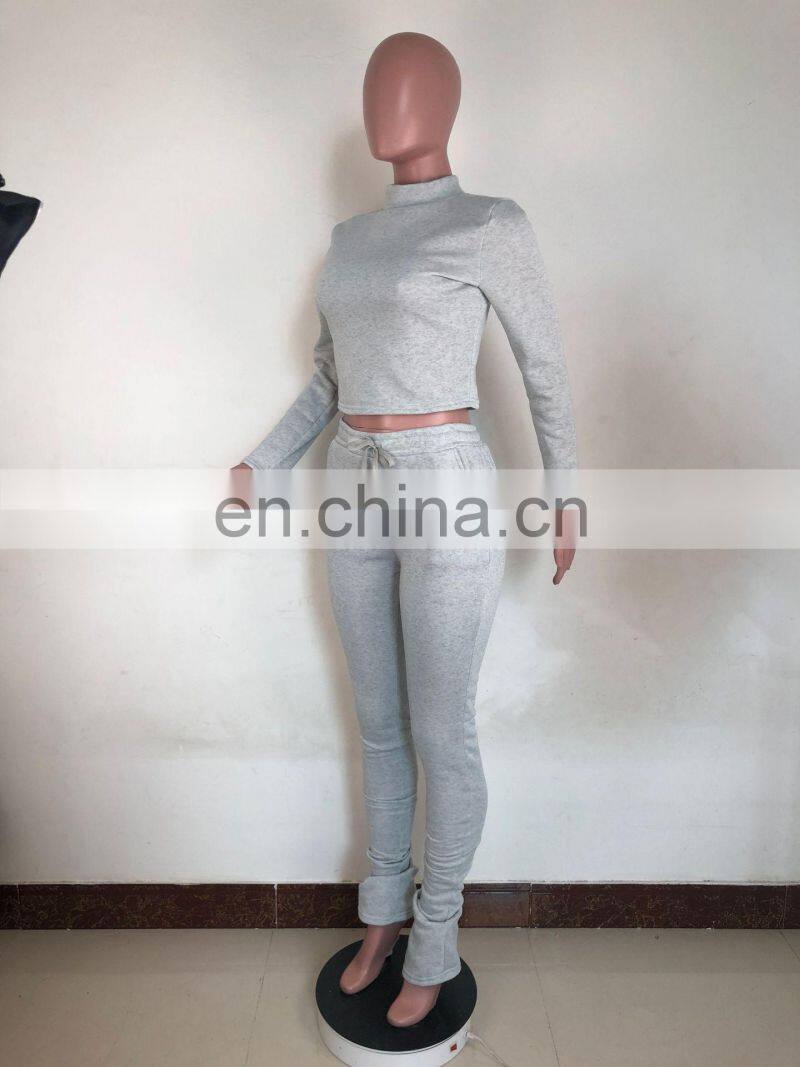 2020 New Design Solid Color Women Hoodies 2 Piece Jogger Sweatsuit Set
