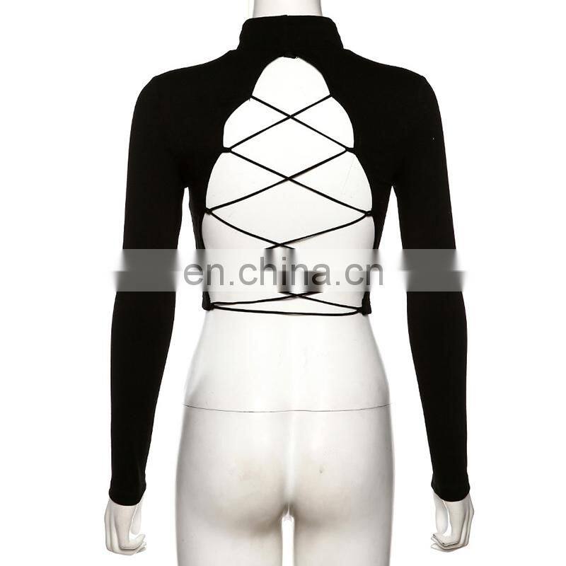 Women Sexy Harajuku Open Back T-shirt Long Sleeve Top Cropped Summer Tops White Clothes Shirt Vintage Tshirt Tee Dropshipping
