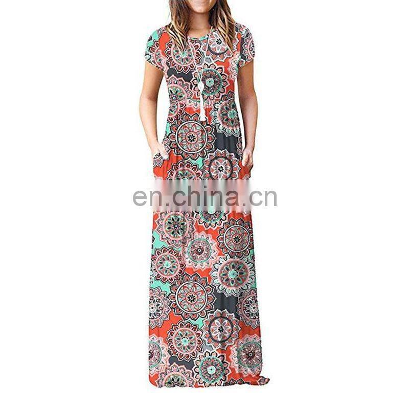 Home > Apparel & Accessories > Wedding Dresses & Ceremonial Clothing > Evening Dresses > Manufacturers Wholesale Women's Short Sleeve Casual Printed Pocket Dress Women's Clothing