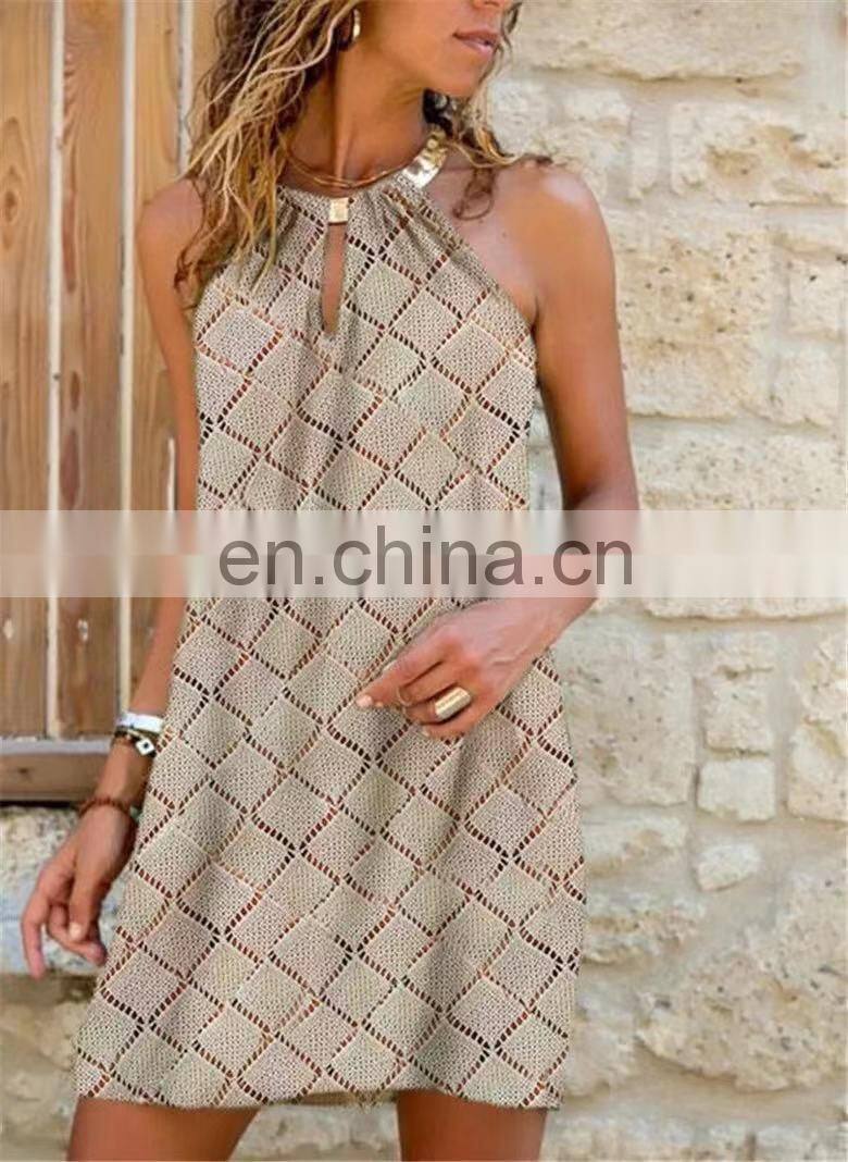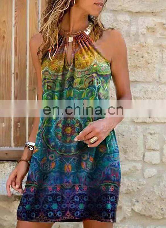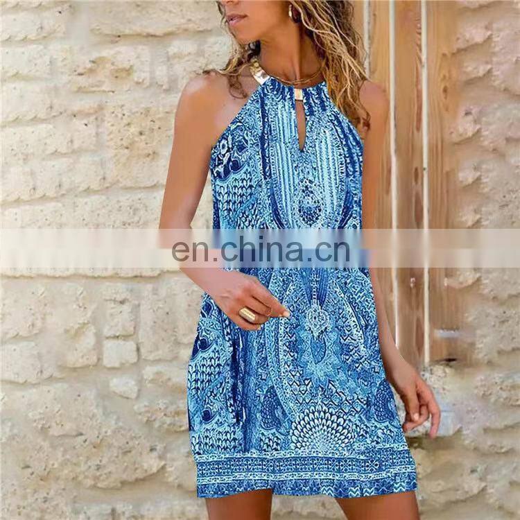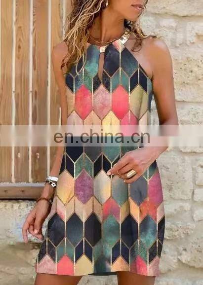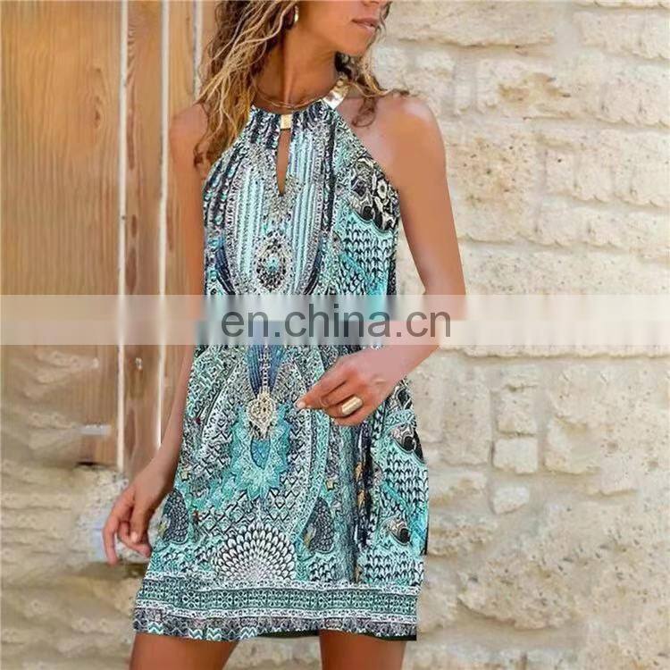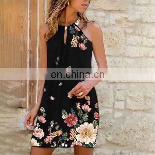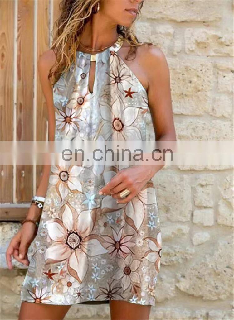 Manufacturers Wholesale Women's Short Sleeve Casual Printed Pocket Dress Women's Clothing