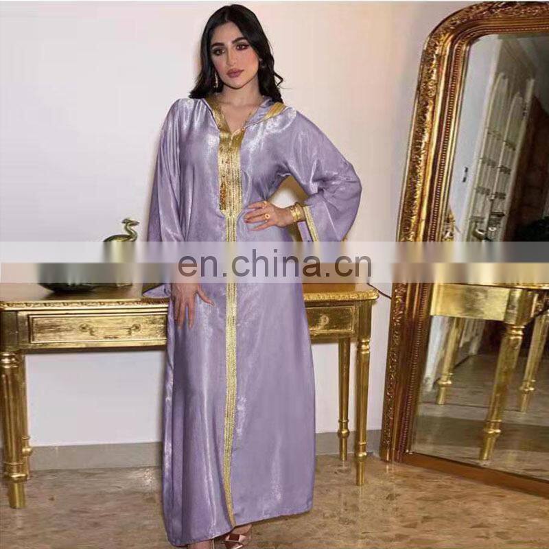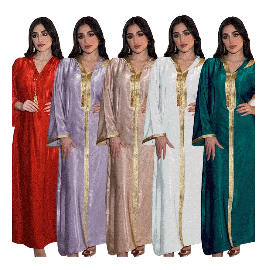 Middle East Dubai Champagne Hooded Lace Suede Robe Muslim Robe Female Abaya Ramadan