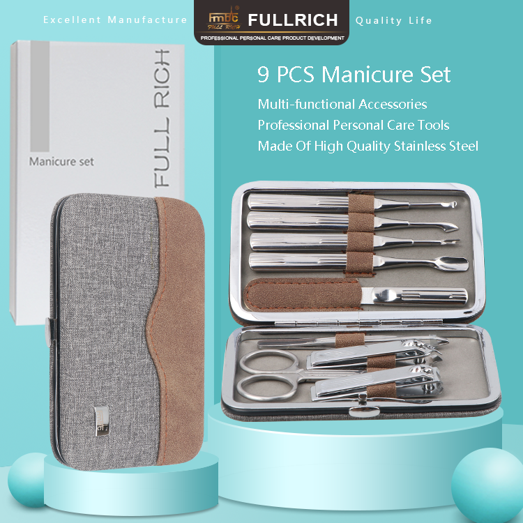 Professional Stainless Steel Manicure Set Men Grooming 9 in 1 With Luxurious PU Travel Case