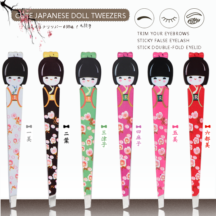 Stainless Steel Eyebrow Tweezers Nipper in Colorful Japanese Doll Shape