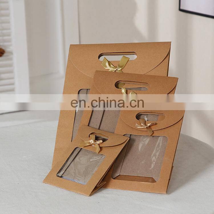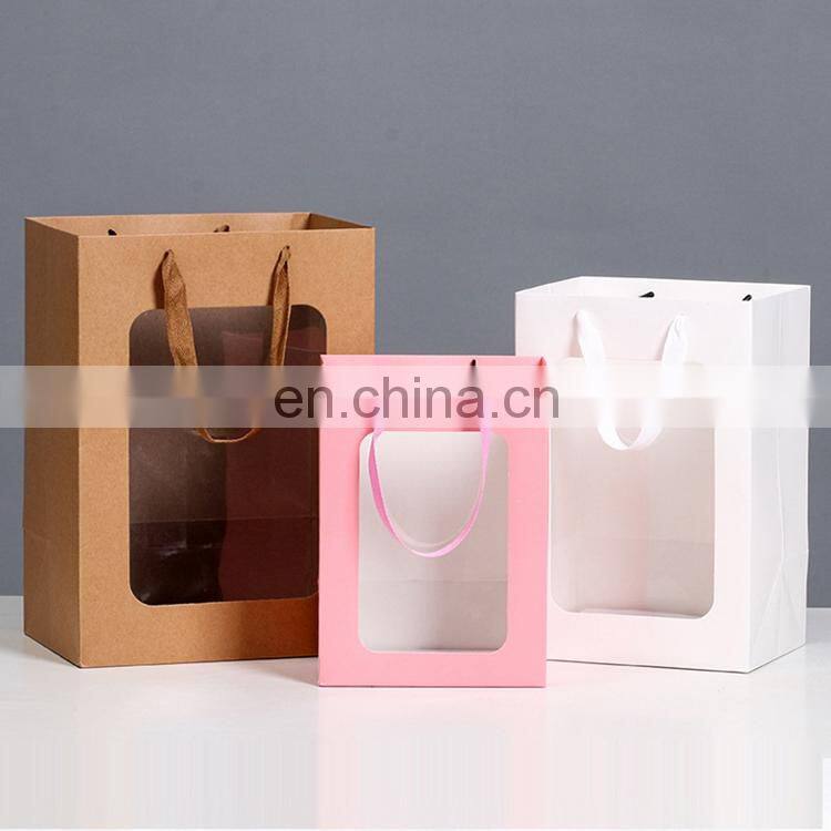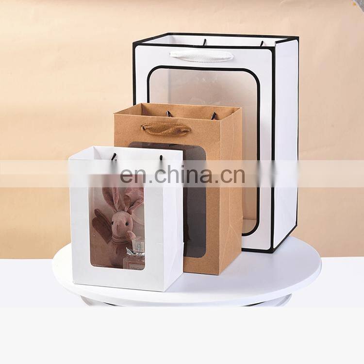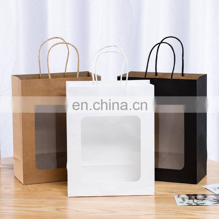 Kraft Brown Shopping Paper Kraft Gift Bags Clear Front With Window