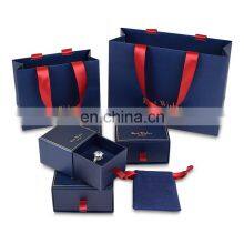Eco Friendly Luxury Christmas Printed Paper Craft Gift Drawer Box Blue Paper Jewelry Boxes