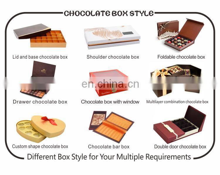 • We are professional paper packaging products provider, especially in gift packaging field, we can provide you chocolate boxes, foldable boxes, cosmetic boxes, custom shape boxse, paper bags, other related packaging products and packaging auxiliary products.