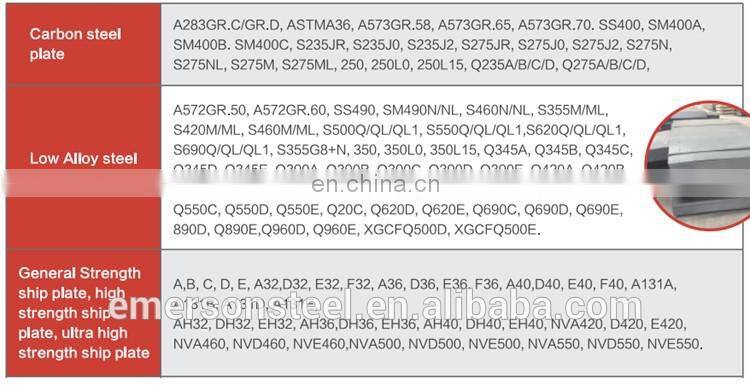 Tianjin Emerson Commercial and Trade Co.,Ltd has large stocks for the carbon steel and low alloy steel plates and sheets, especially have the thick plate and heavy plates on stock, also can provide the special material and large size steel plates, boiler and pressure vessel steel plate, marine steel plate, hot rolled steel plate for new production.