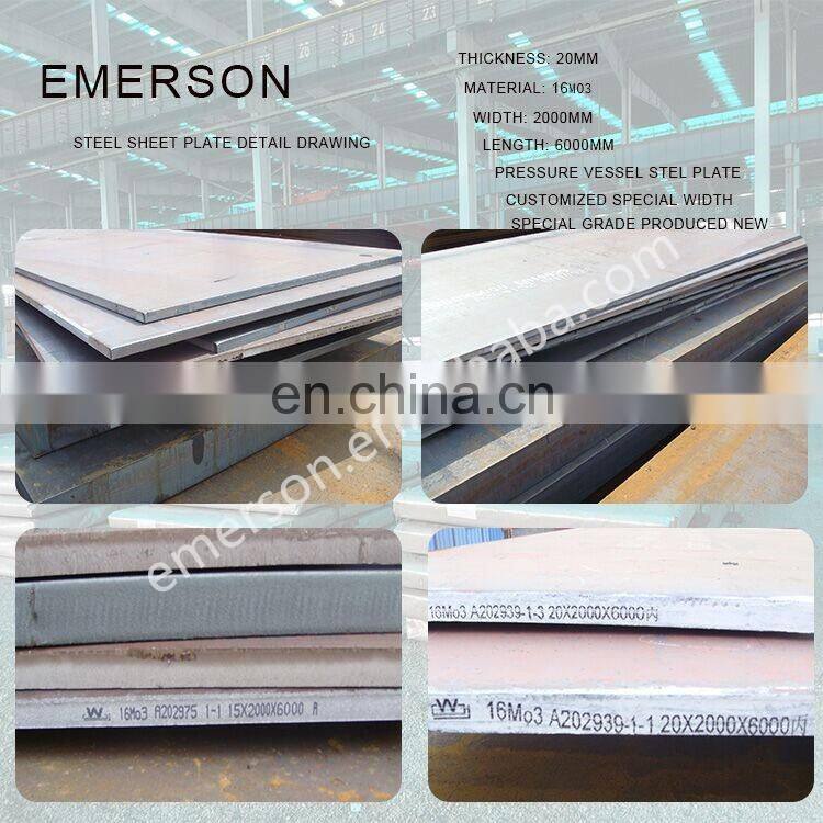 Tianjin Emerson Commercial and Trade Co.,Ltd has large stocks for the carbon steel and low alloy steel plates and sheets, especially have the thick plate and heavy plates on stock, also can provide the special material and large size steel plates, boiler and pressure vessel steel plate, marine steel plate, hot rolled steel plate for new production.