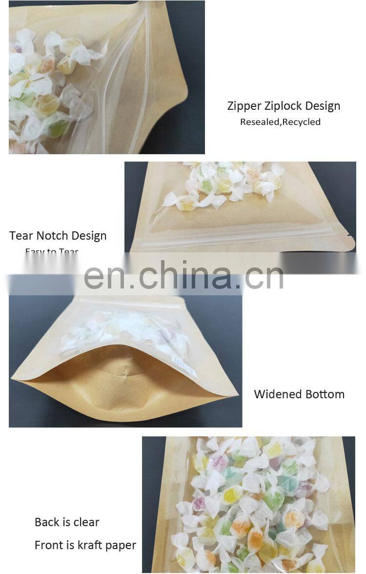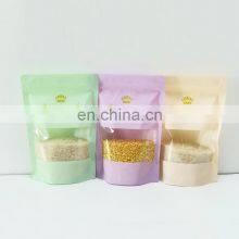 Free Sample Custom Printed Airtight Food Top Zip Kraft Paper Pouches With Clear Window Snack Nuts Packaging Bag With Zipper